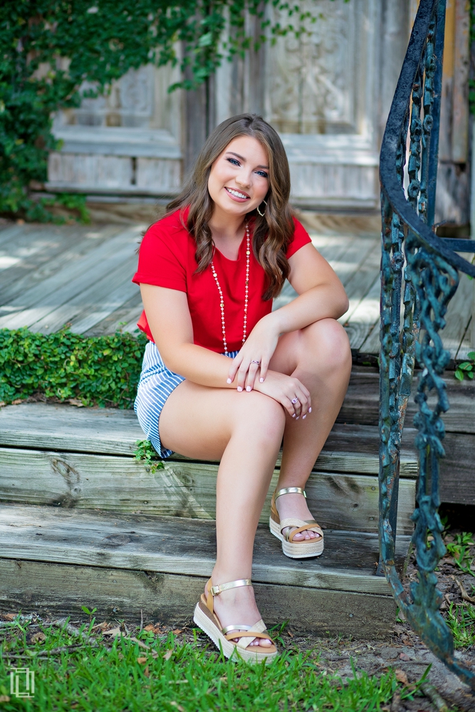 Pin strip shorts and red shirt because it showed my personality more and it was SUPER comfy!
